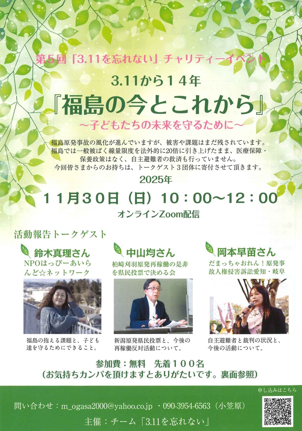 11月30日イベントチラ:3.11から14年『福島の今とこれから』
